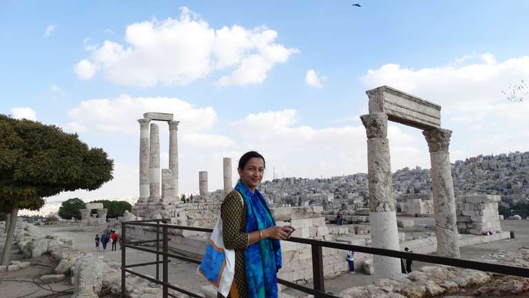 We stayed in Arab Tower Hotel in Amman. It was a good hotel with pleasing and helpful staff members. And the best part was that we could see the Roman theater from our room. There was an interesting mix of graffiti and strange street art on the walls of buildings. We had a stay of four days in Amman. As Abhishek (my son)had already visited the place, he made a remarkable itinerary to get the best out of these four days. First, we went to see the Amman Citadel National Historic Site. From there we could see the beautiful panoramic view of the city. It has the temple of Hercules, Byzantine Church, the Umayyad Palace, and the Jordan Archaeological Museum. There were colossal remains of the great statue of the Roman Hero – Hercules, including his hand and pillars. There were inscriptions all around to tell us that it dates to 160 CE. The Palace was built during the Umayyad dynasty and is mostly in ruins due to an earthquake. The Byzantine church had its pillars; mosaic covered floors and floor plan. It was a very captivating sight to behold such precision and art in its basic form. We couldn’t go to the museum but had a fair deal of archeological sites in our list.